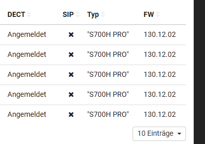 In der Pascom stehen die Mobilteile als nicht registriert.