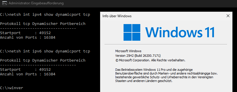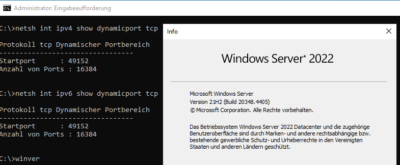 Wie ist denn der standardmäßige dynamische Portbereich konfiguriert?