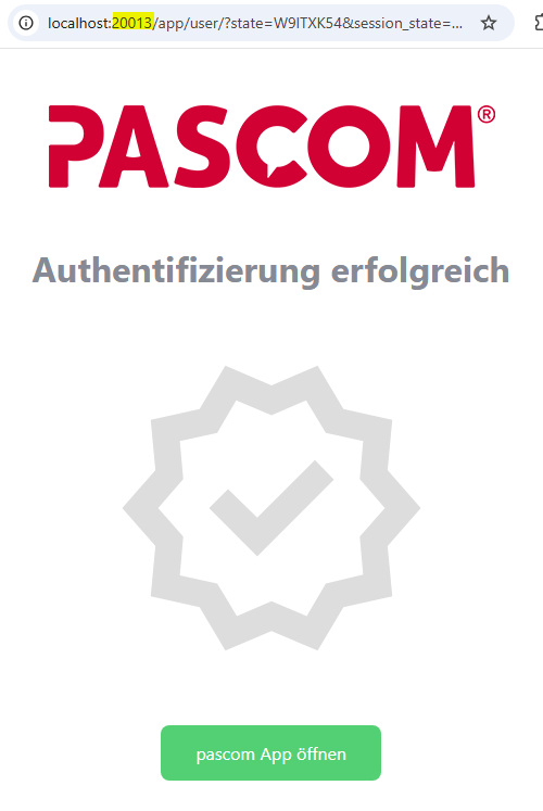 Allerdings funktioniert dann der an die erfolgreiche Anmeldung anschließende Redirect nicht, da der Pascom-Client einen anderen Port erwartet.