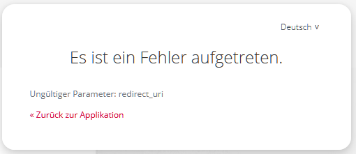 Die Pascom-Website zeigt dann den Fehler “Ungültiger Parameter: redirect_uri” an.