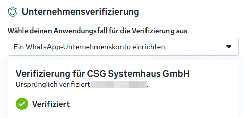 Ich habe dann natürlich meinen WhatsApp-Business-Account in meine Facebook-Business-Seite erfolgreich integriert.