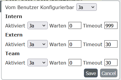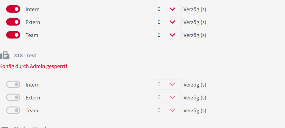 Das sind doch die gleichen Möglichkeiten, wie von @fsc.ls angegeben: Wenn vom Admin zugelassen: Ein/Aus sowie Verzögerung je Gerät je “Anruferherkunft”. Der Timeout selbst ist hier nicht anpassbar (abseits vom an/aus an sich).