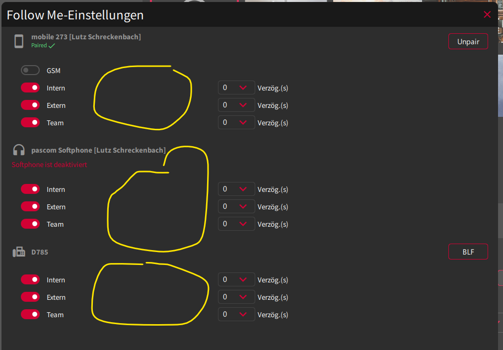 Ich habe mir gerade noch einmal das ältere Dokumentationsvideo angeschaut, außer einer veränderten Anordnung der FollowMe-Einstellungen war es im Client auch früher nicht einstellbar.![]()